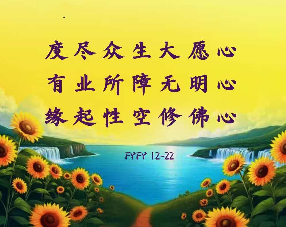 广发无上菩提心,度尽众生大愿心,有业所障无明心,缘起性空修佛心。