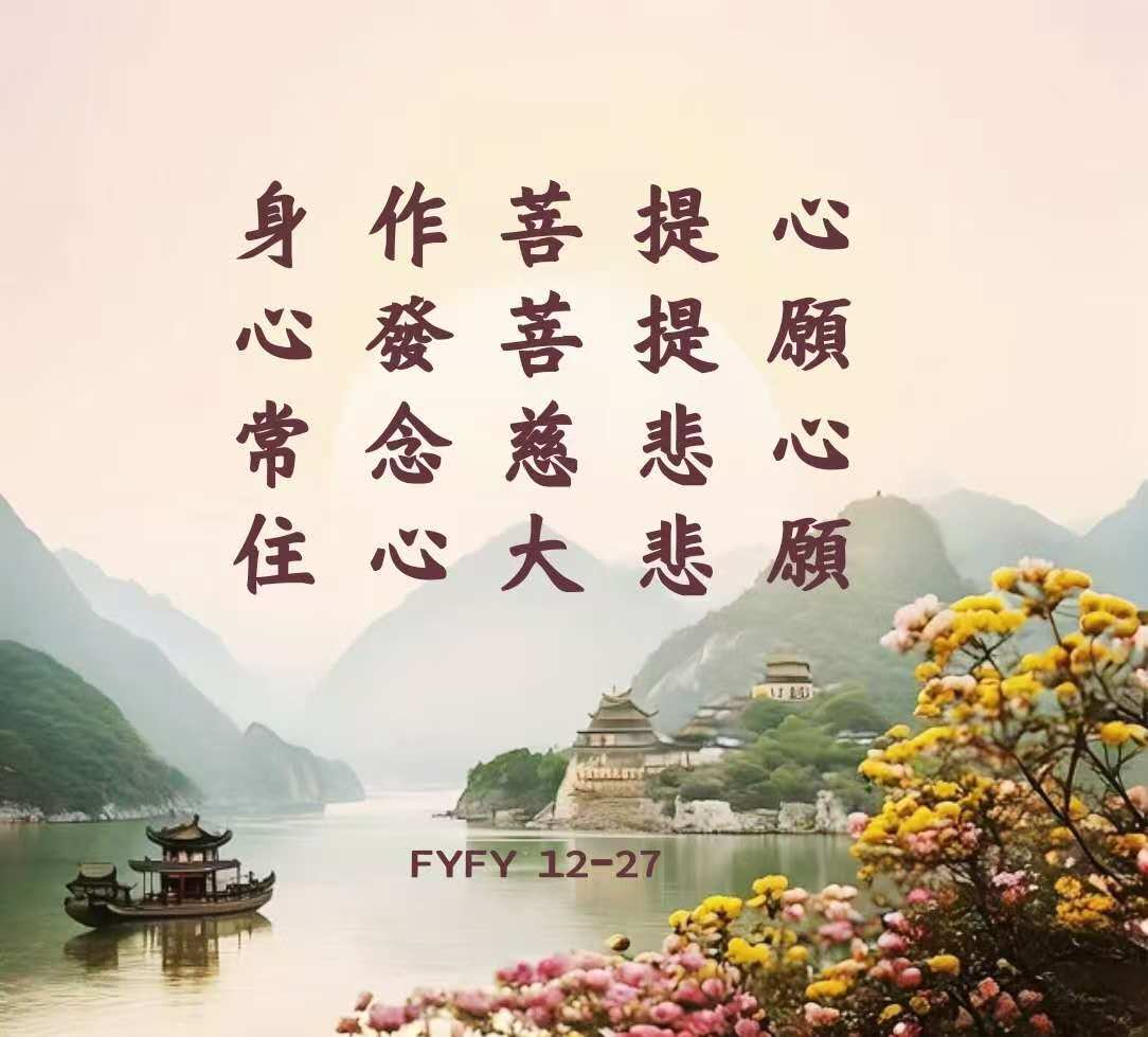 身作菩提心,心發菩提願,常念慈悲心,住心大悲願。
