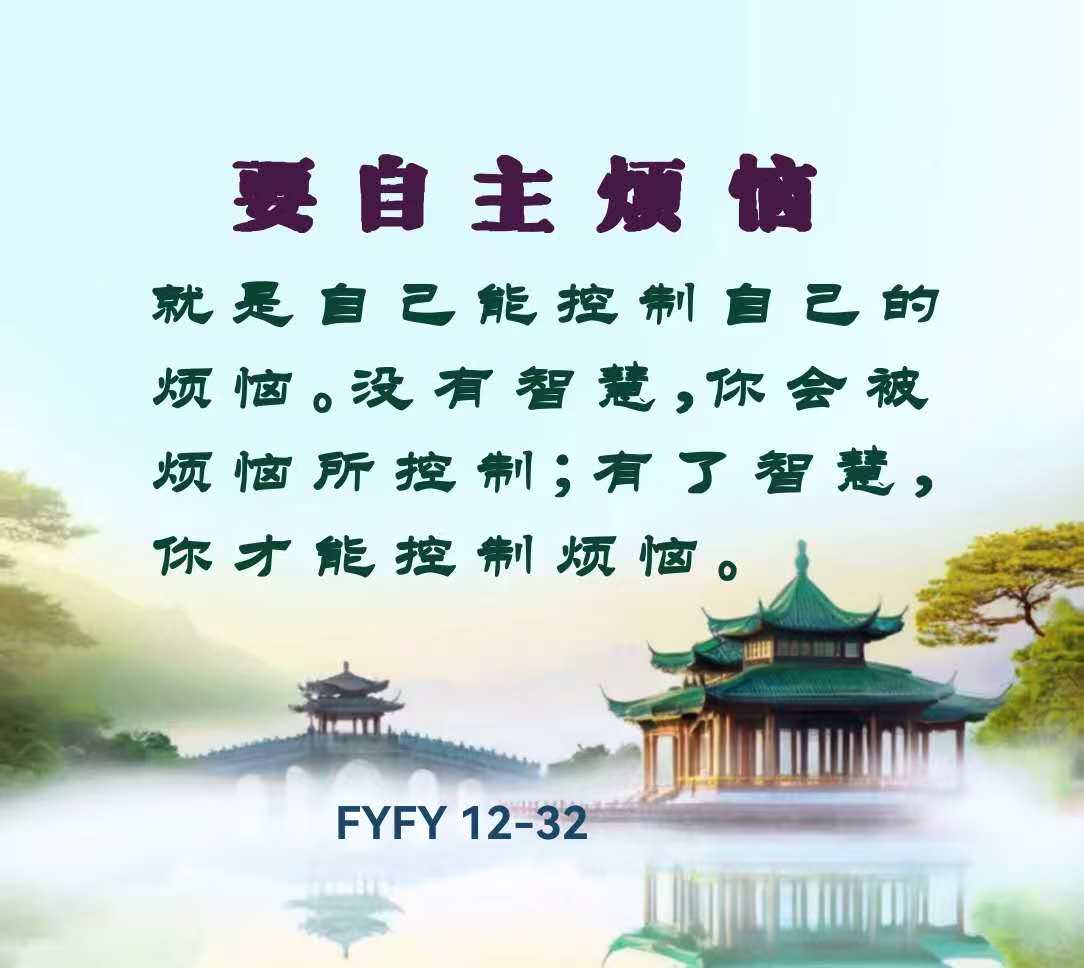 要自主烦恼,就是自己能控制自己的烦恼。没有智慧,你会被烦恼所控制;有了智慧,你才能控制烦恼。
