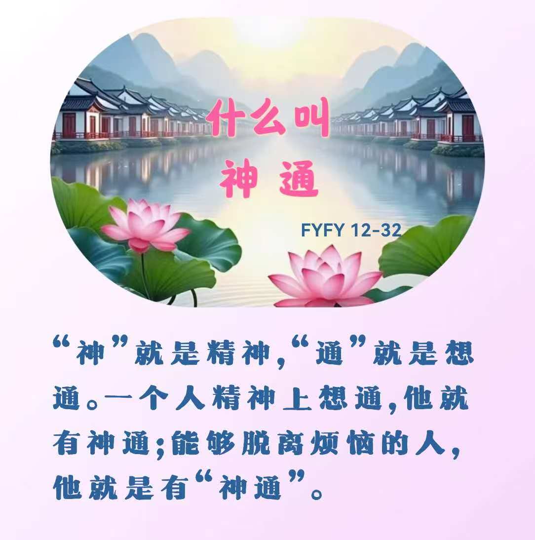 什么叫“神通”?“神”就是精神,“通”就是想通。一个人精神上想通,他就有神通;能够脱离烦恼的人,他就是有“神通”。