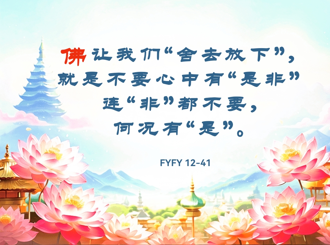 佛让我们“舍去放下”,就是不要心中有“是非”。连“非”都不要,何况有“是”。