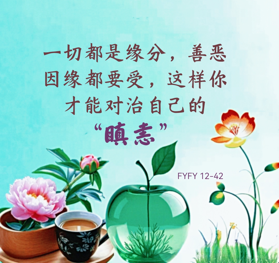 一切都是缘分,善恶因缘都要受,这样你才能对治自己的“瞋恚”。