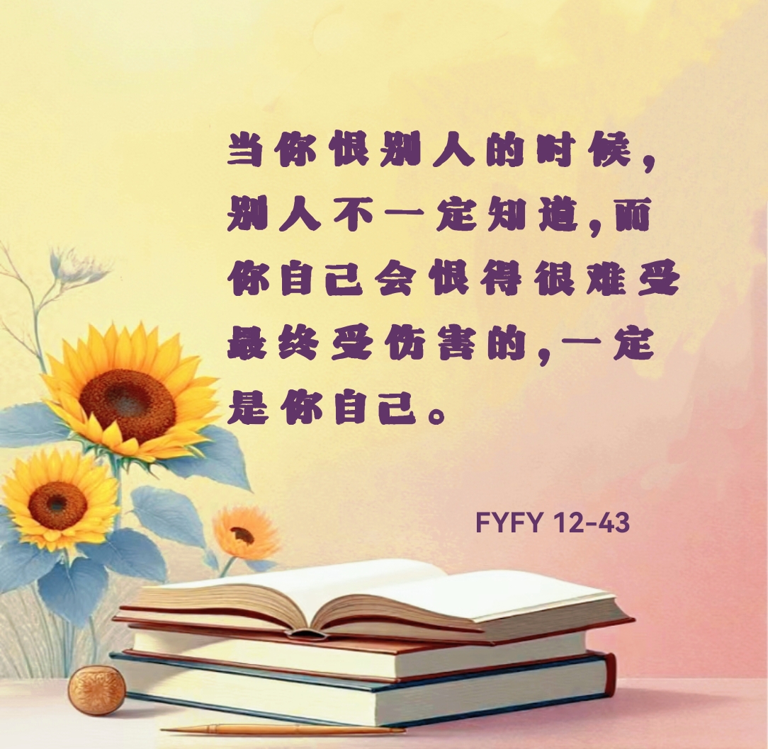 当你恨别人的时候,别人不一定知道,而你自己会恨得很难受。最终受伤害的,一定是你自己。