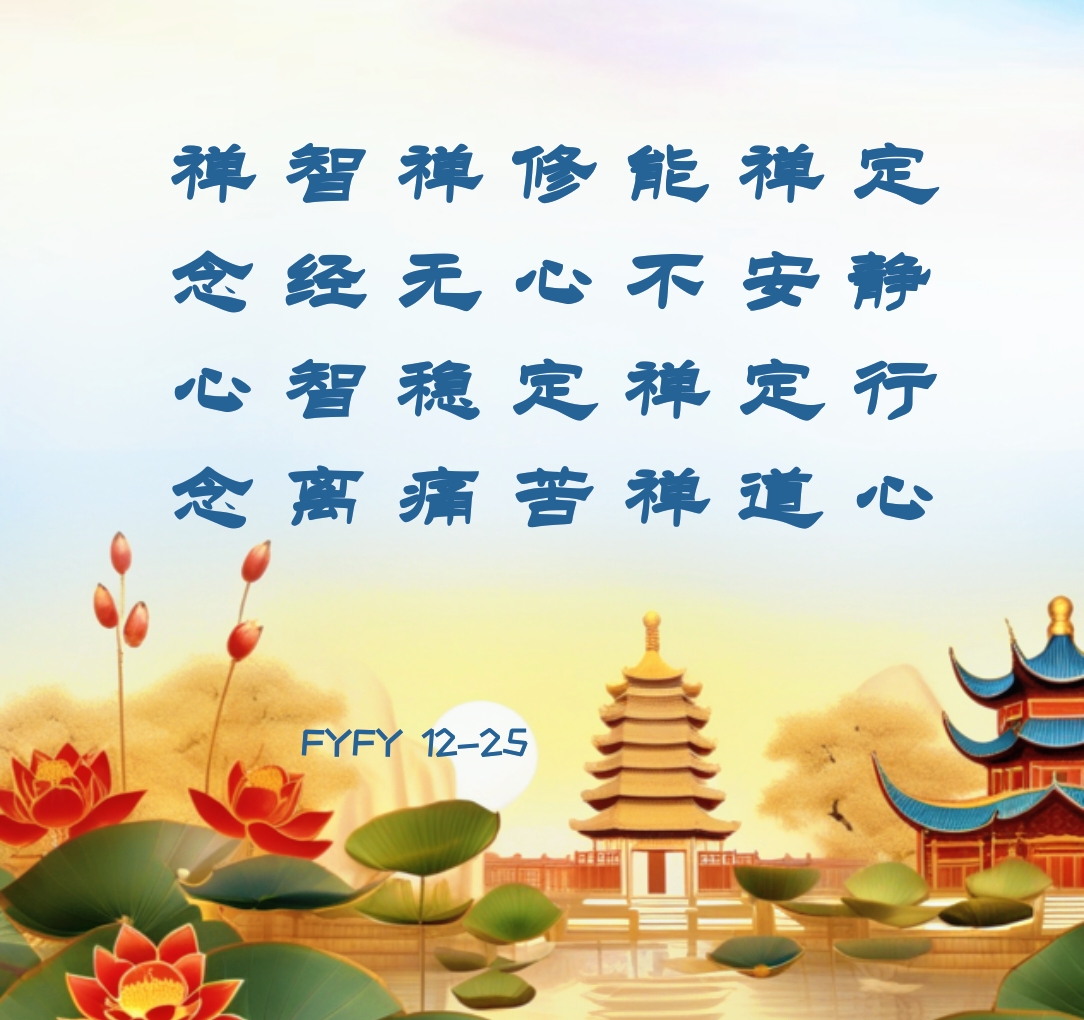 禅智禅修能禅定,念经无心不安静。心智稳定禅定行,念离痛苦禅道心。