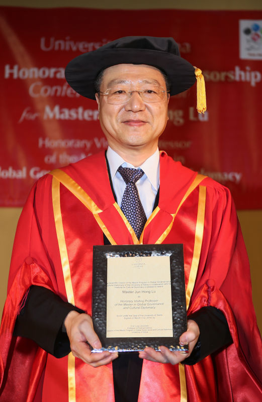 因其在国际社会推动世界和平的突出贡献,在联合国、美国国会、英国伦敦世界宗教联合大会、美国宽容博物馆、德国柏林等地举办的国际和平会议,及意大利世博会“国际和平日”活动、美国国会众议院、美国洛杉矶六市政府等多次为师父授予“世界和平大使”殊荣。师父还受聘为意大利770年历史名校锡耶纳大学“荣誉客座教授”,获得马来西亚皇室授予“拿督”荣誉爵位;作为特邀嘉宾应邀出席“2015年第十二届联合国卫塞节庆典”,应联合国大会主席邀请出席“2015年联合国大会和平文化高峰论坛”,与各国政要、高僧大德、佛教领袖共谋世界和平。