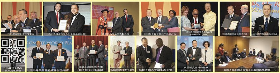 师父董事长于2012年,在英国伦敦“世界宗教联合大会”授予“世界和平奖(佛教)”及“本年度大会和平大使”称号。同年,应邀赴美国哈佛大学演讲,弘扬中华文化与佛法。之后在英国国会上议院获得“英联邦民族社区特别贡献奖”;2013至2015年,多次在德国柏林、联合国、美国国会、美国宽容博物馆等地举办的国际和平会议上获得世界和平奖项。2014年,荣获意大利770年历史的名校锡耶纳大学(University of Siena)授予“荣誉客座教授”殊荣。2015年在马来西亚皇室获得“拿督”终身荣誉爵位;同年作为特邀嘉宾出席“2015年第十二届联合国卫塞节庆典”,与世界各国佛教领袖合影并参见僧王。