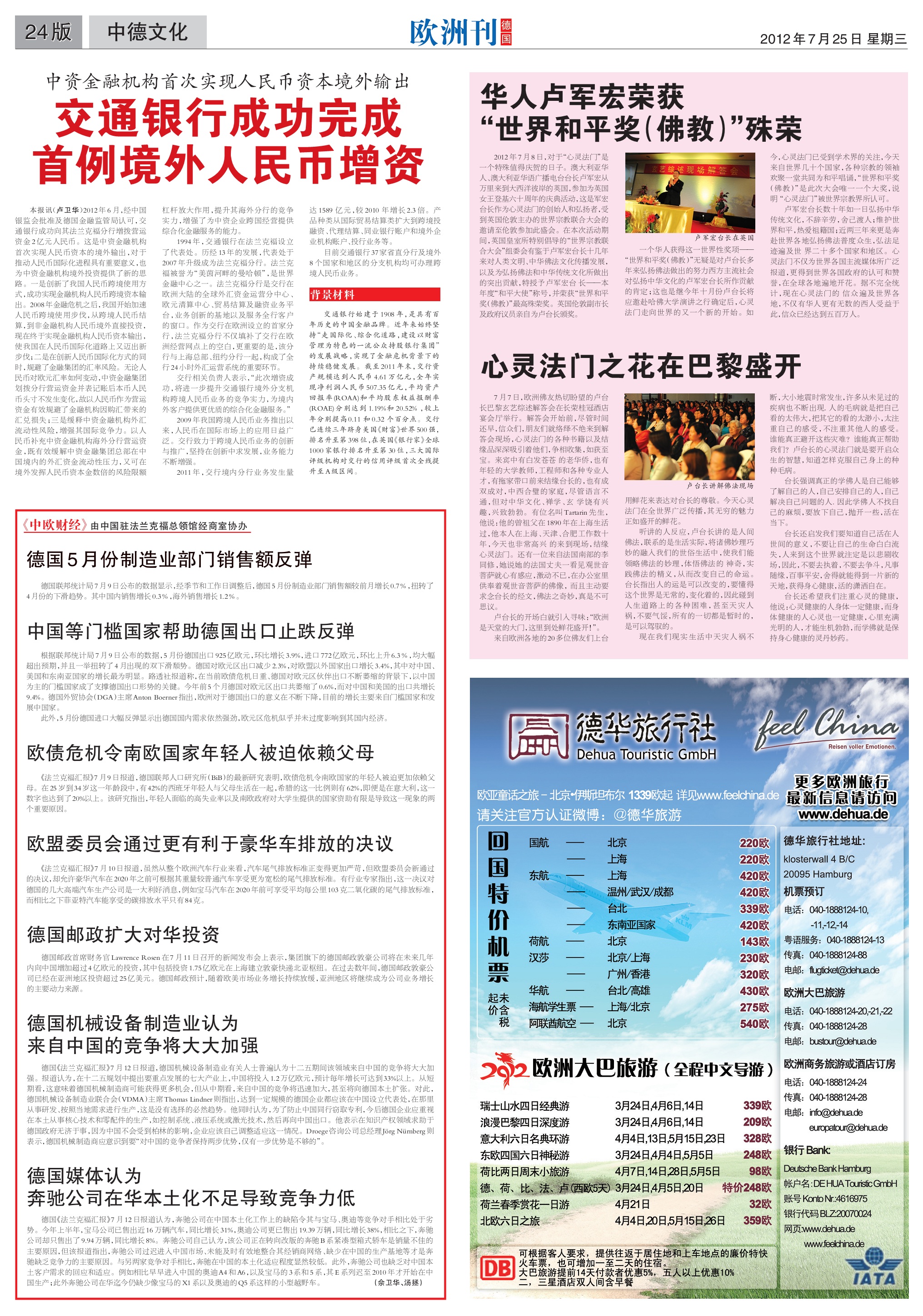 2012-7-25 人民日报海外版欧洲刊报道: