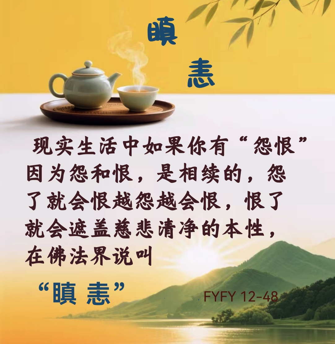 现实生活中如果你有“怨恨”,因为怨和恨是相续的,怨了就会恨,越怨越会恨,恨了就会遮盖慈悲清净的本性,在佛法界说叫“瞋恚”。