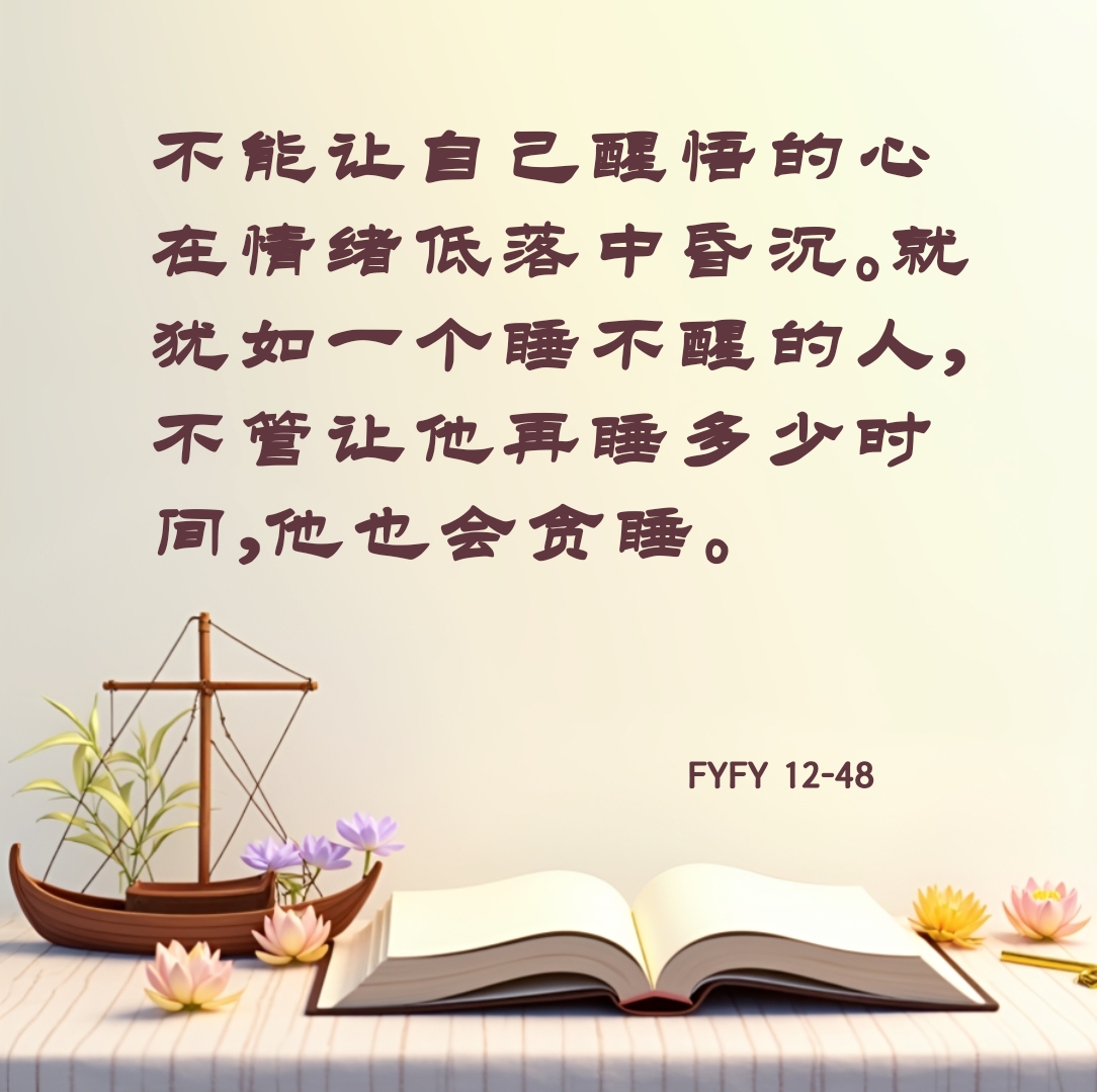 不能让自己醒悟的心在情绪低落中昏沉。就犹如一个睡不醒的人,不管让他再睡多少时间,他也会贪睡。