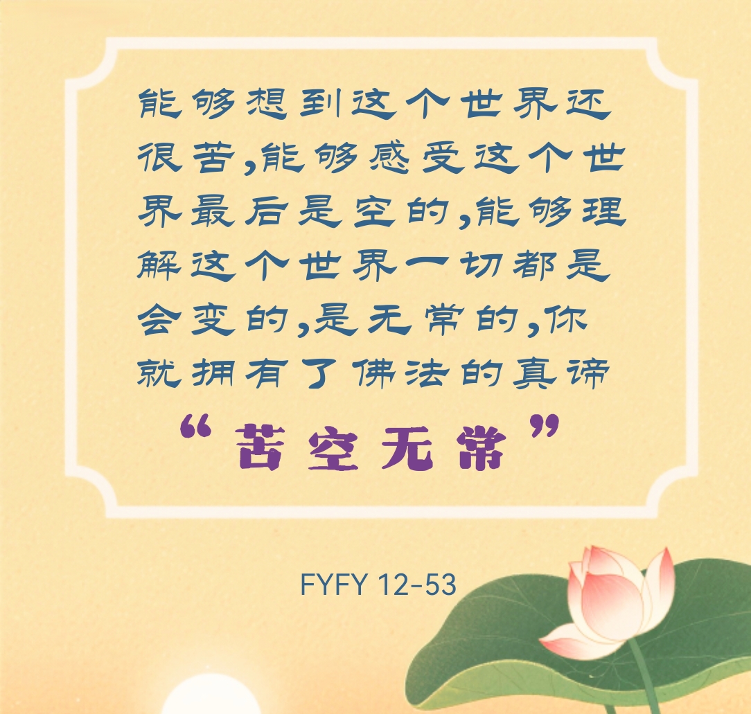 能够想到这个世界还很苦,能够感受这个世界最后是空的,能够理解这个世界一切都是会变的,是无常的,你就拥有了佛法的真谛“苦空无常”。