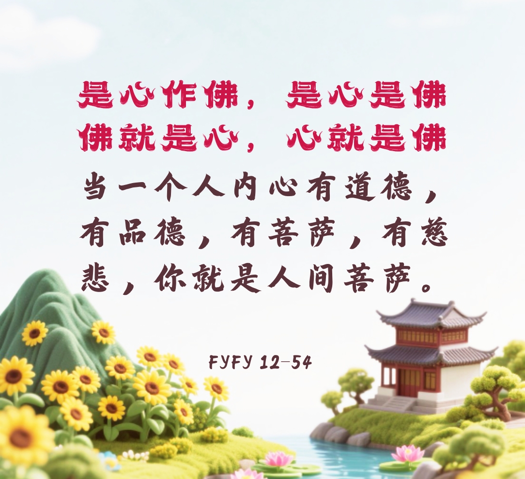 是心作佛,是心是佛,佛就是心,心就是佛。当一个人内心有道德,有品德,有菩萨,有慈悲,你就是人间菩萨。