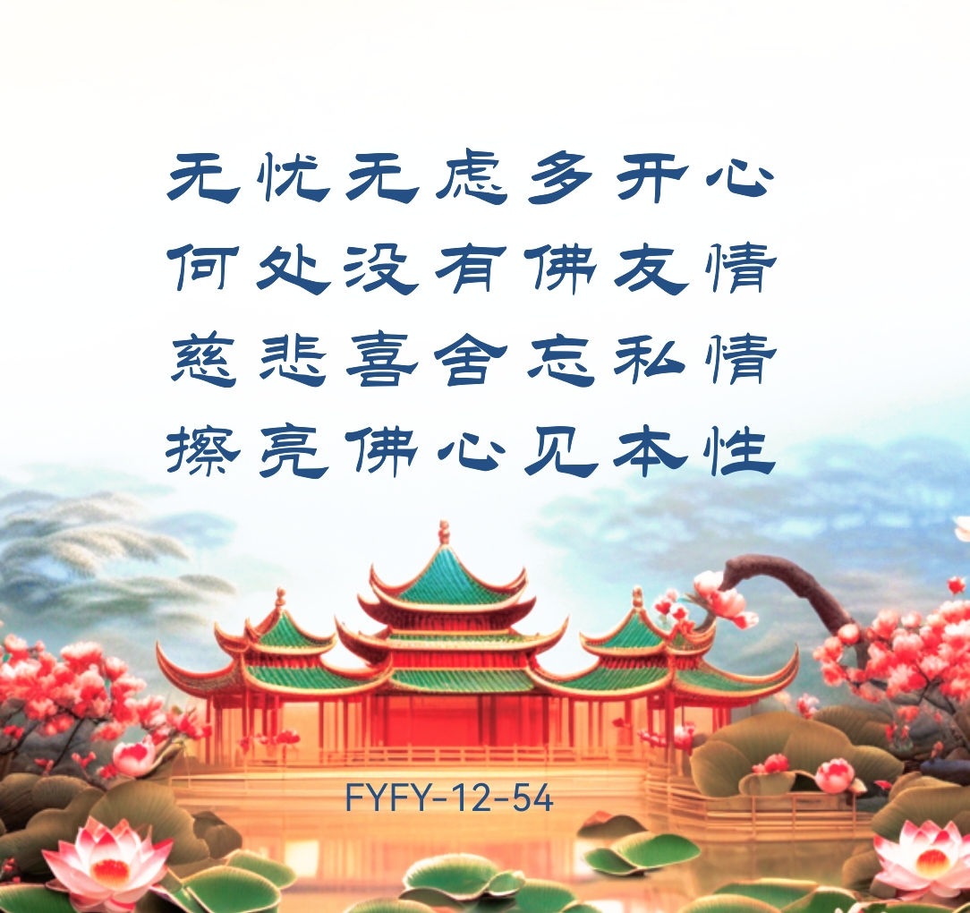 无忧无虑多开心,何处没有佛友情。慈悲喜舍忘私情,擦亮佛心见本性。