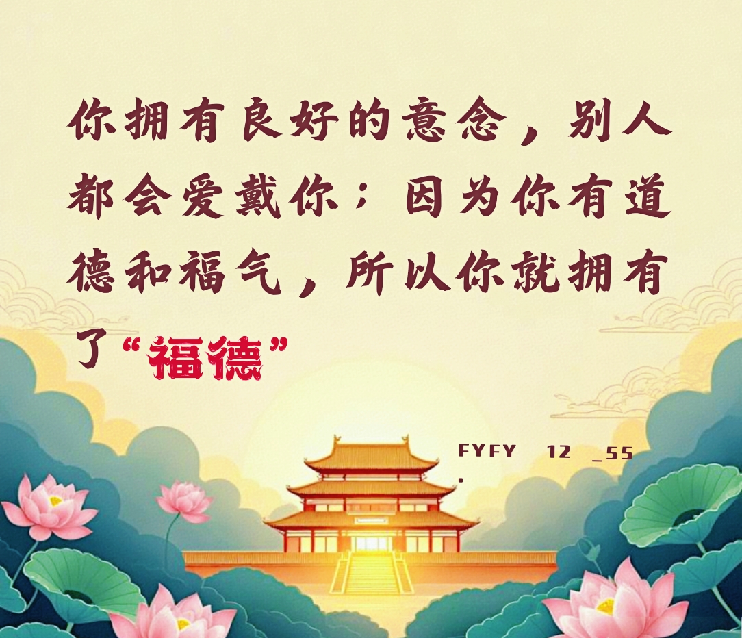 你拥有良好的意念,别人都会爱戴你;因为你有道德和福气,所以你就拥有了“福德”。