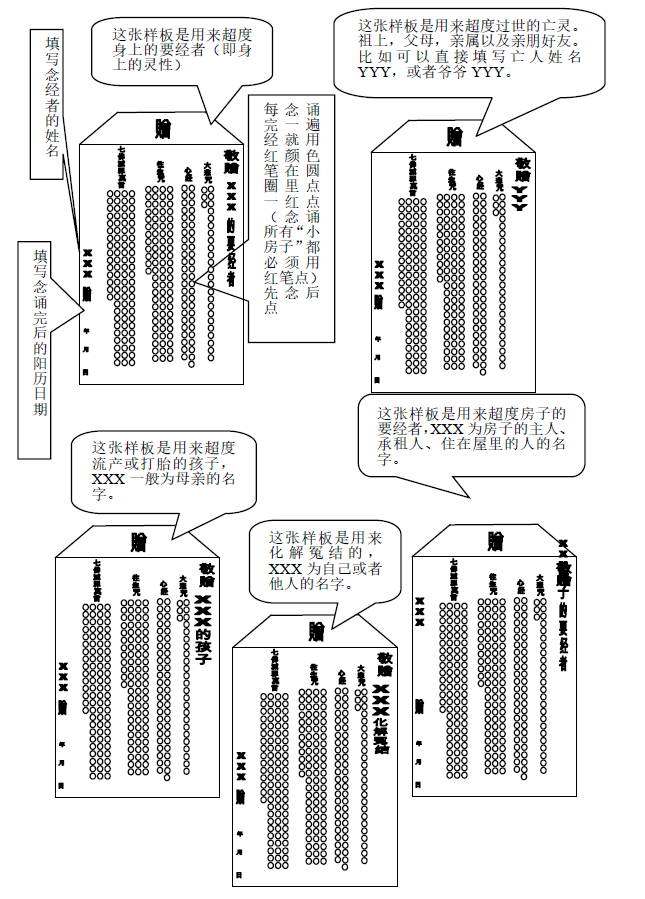 ④ 超度流产或打胎的孩子,每个需要7-21张,敬赠母亲名字的孩子(如果孩子是来讨债的,则可能需要更多经文组合小房子才能超度走)。