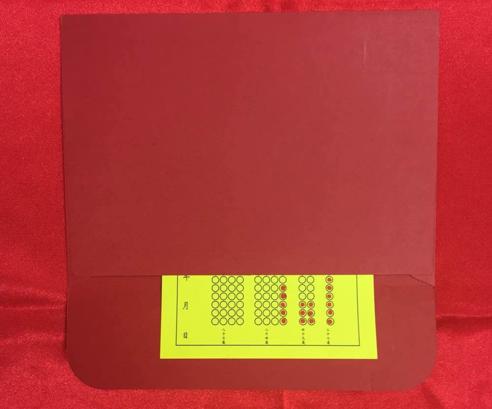 ● 念了一部分或者已念诵完毕的小房子装在红信封内,或用红布包好,以免能量流失。(如图27)