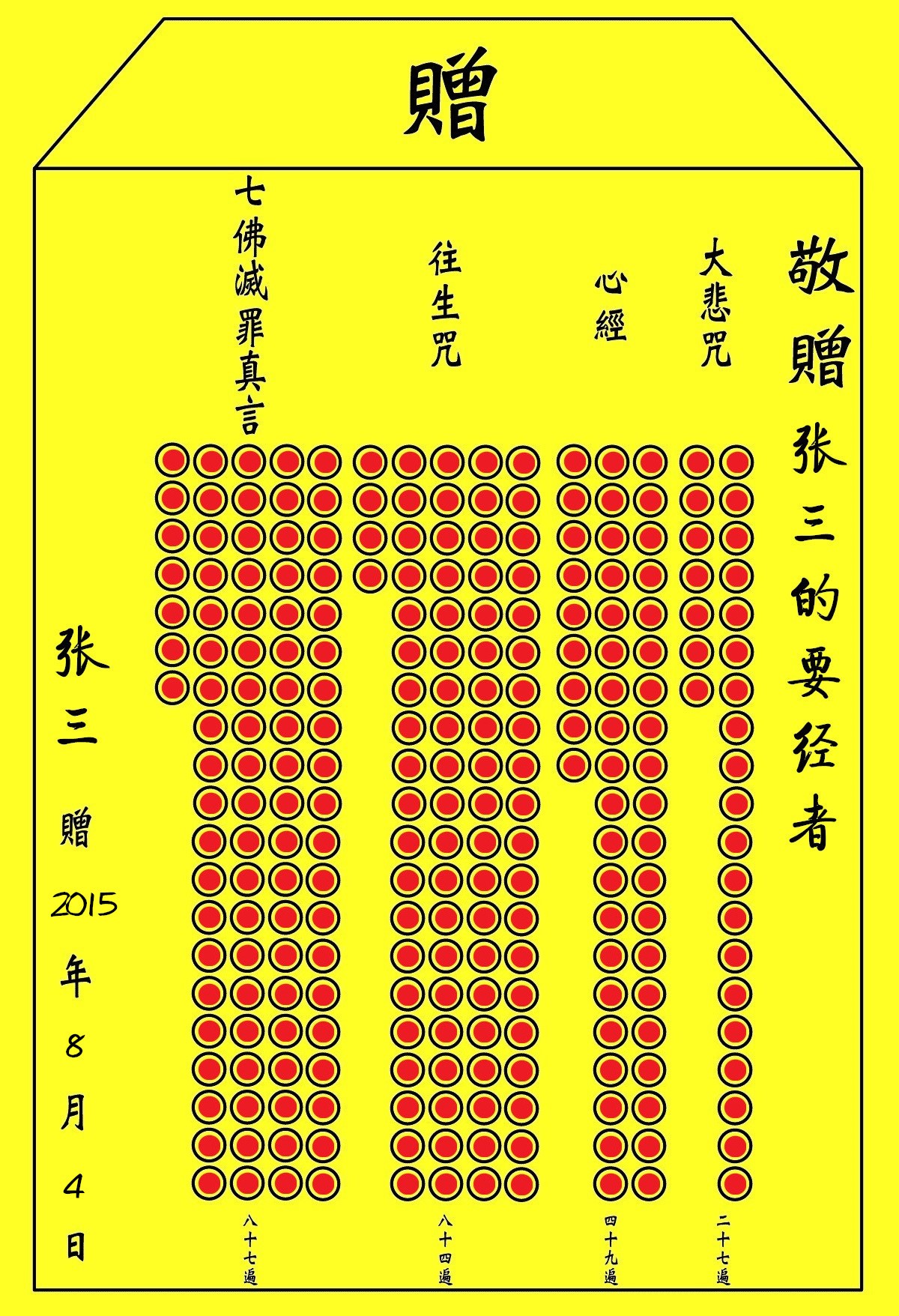 ● 左侧落款的署名必须念经者本人签写,谁念的就是谁的名字,在念诵前先把此处填上。
