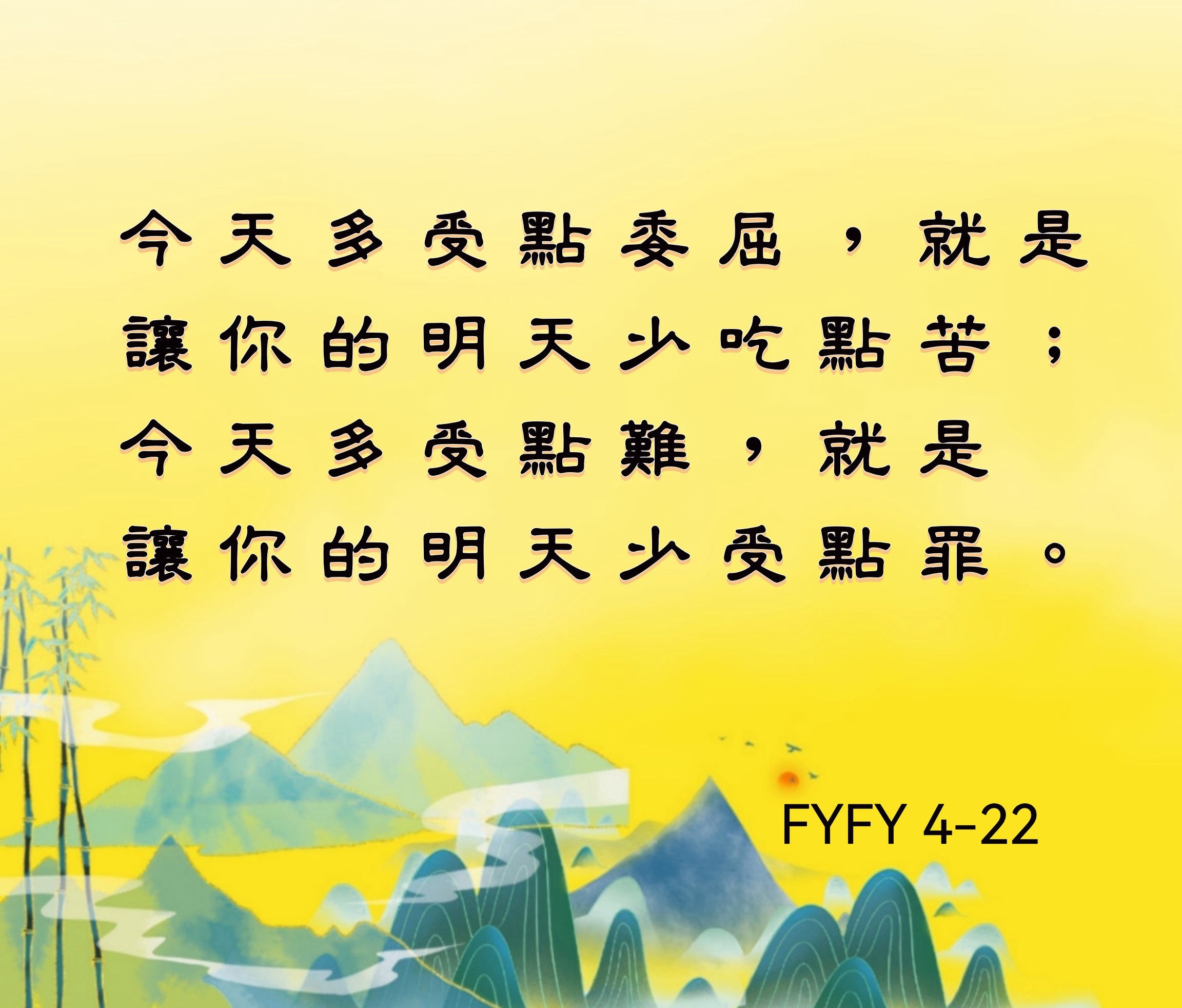 今天多受点委屈,就是让你的明天少点吃苦;今天多点受难,就是让你的明天少点受罪。