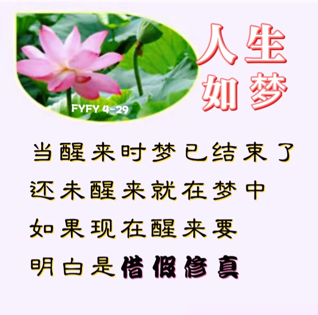 人生如梦,当醒来时梦已结束了,还未醒来就在梦中如果现在醒来要明白是借假修真。