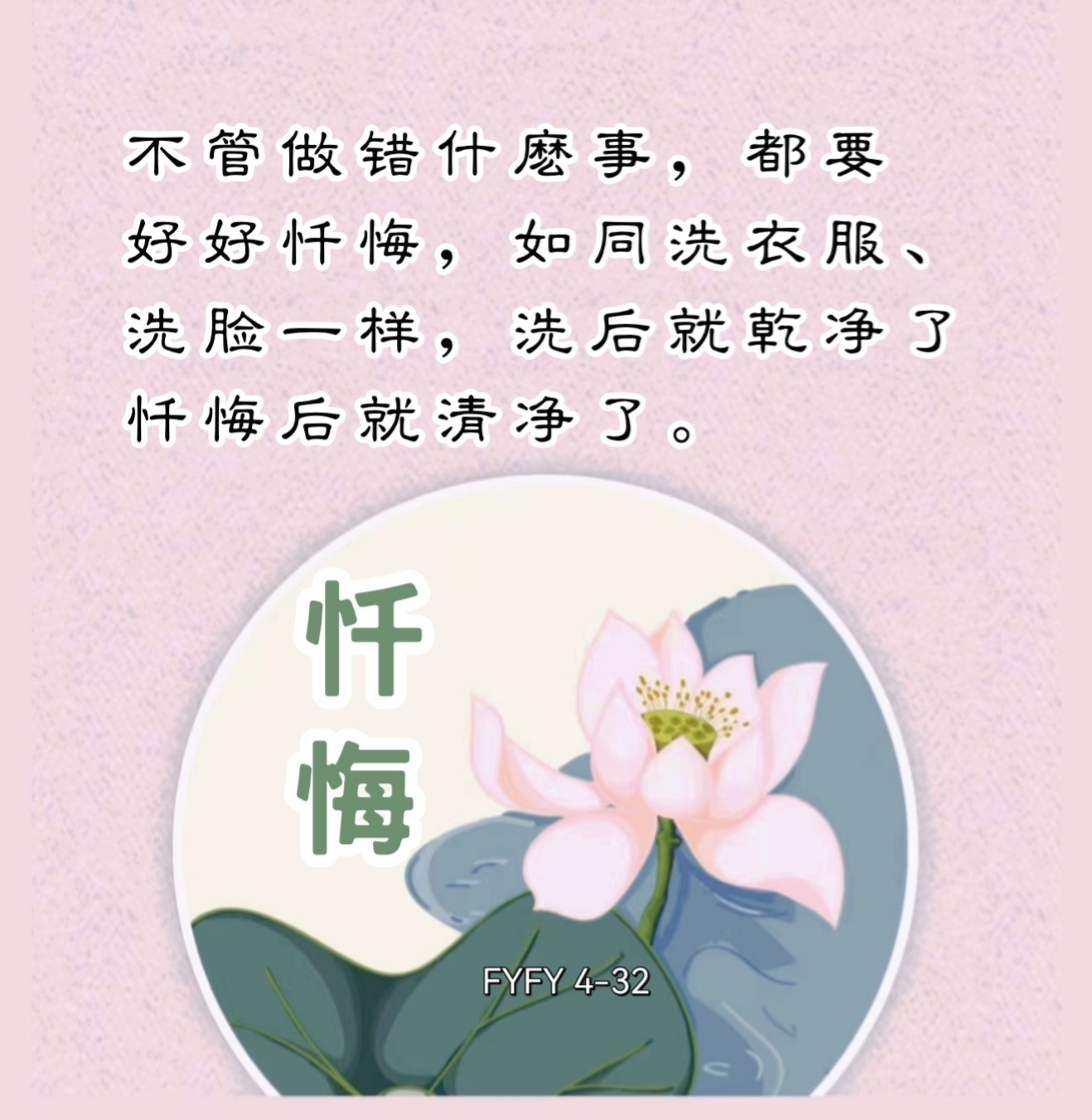 不管做错什么事,都要好好忏悔,如同洗衣服、洗脸一样,洗后就干净了,忏悔后就清净了。