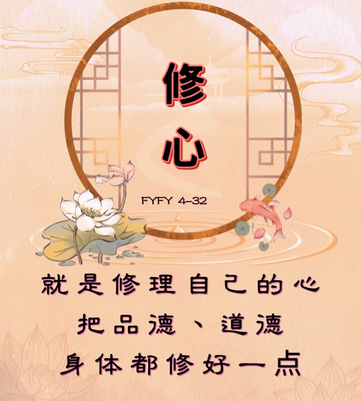 修心就是修理自己的心,把品德、道德身体都修好一点。