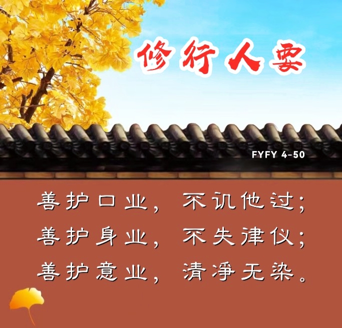 修行人要善护口业,不讥他过;善护身业,不失律仪;善护意业,清净无染。