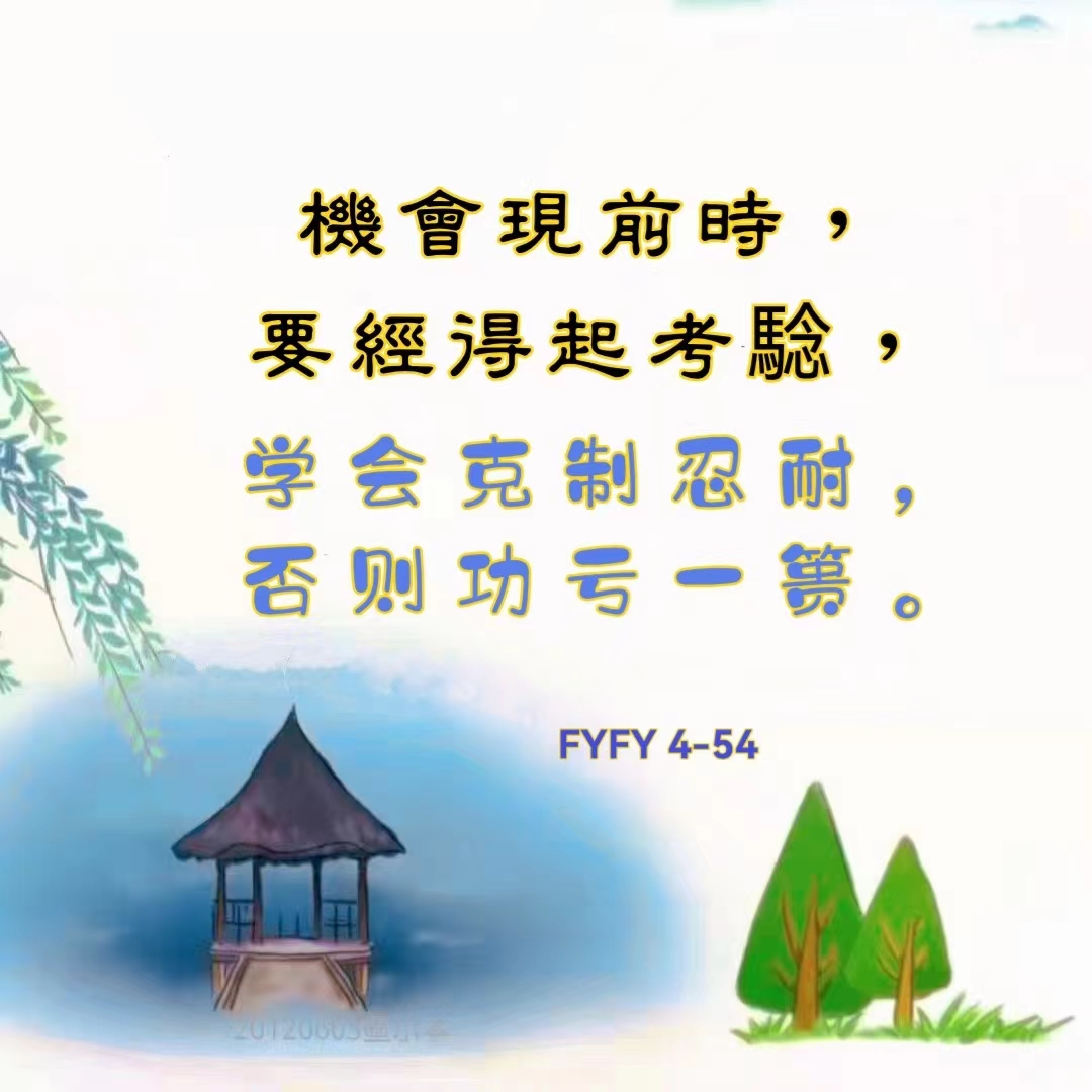機會現前時,要經得起考验,学会克制忍耐,否则功亏一篑。