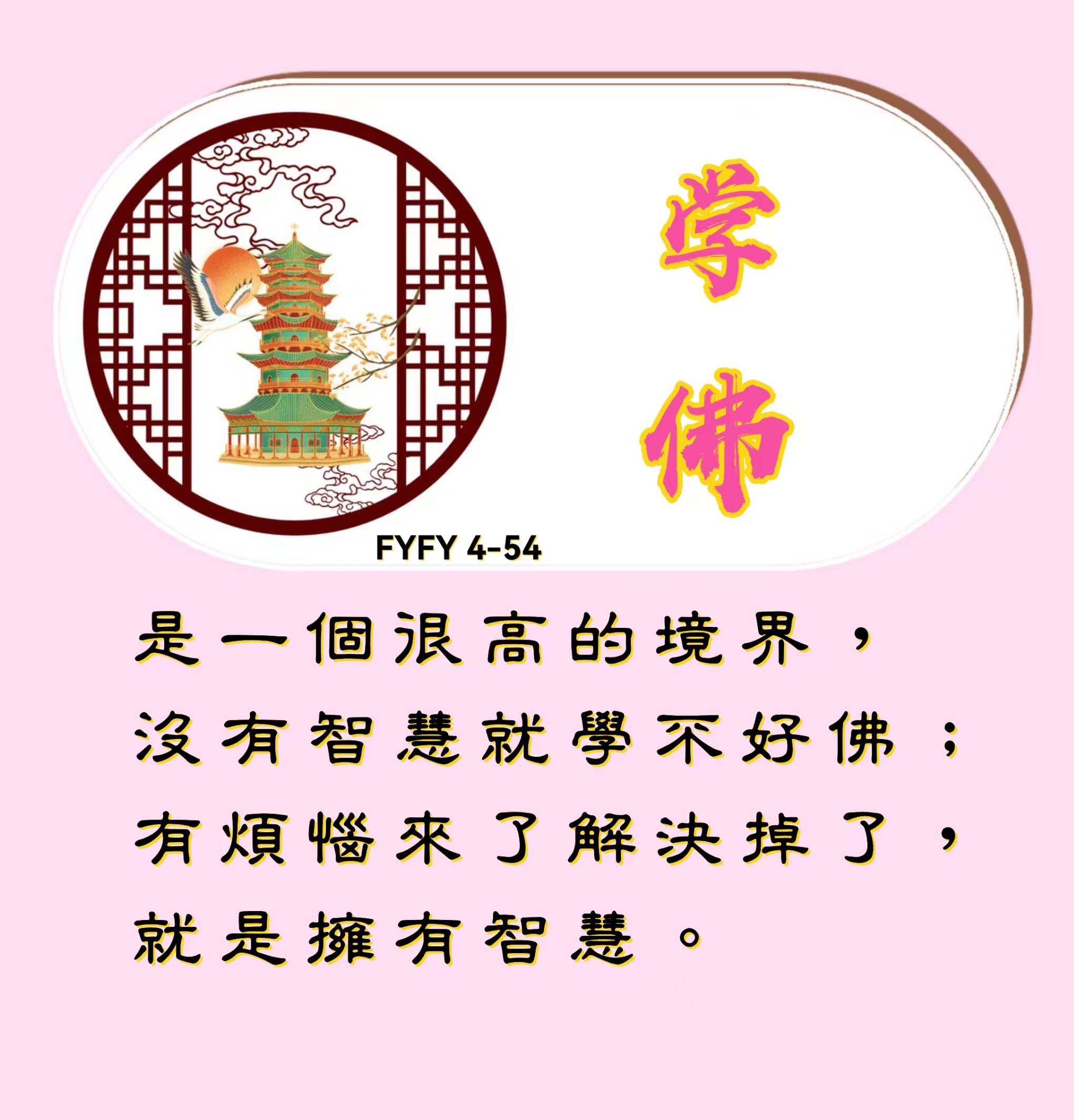 学佛是一個很高的境界,沒有智慧就學不好佛;有煩惱來了解決掉了,就是擁有智慧。