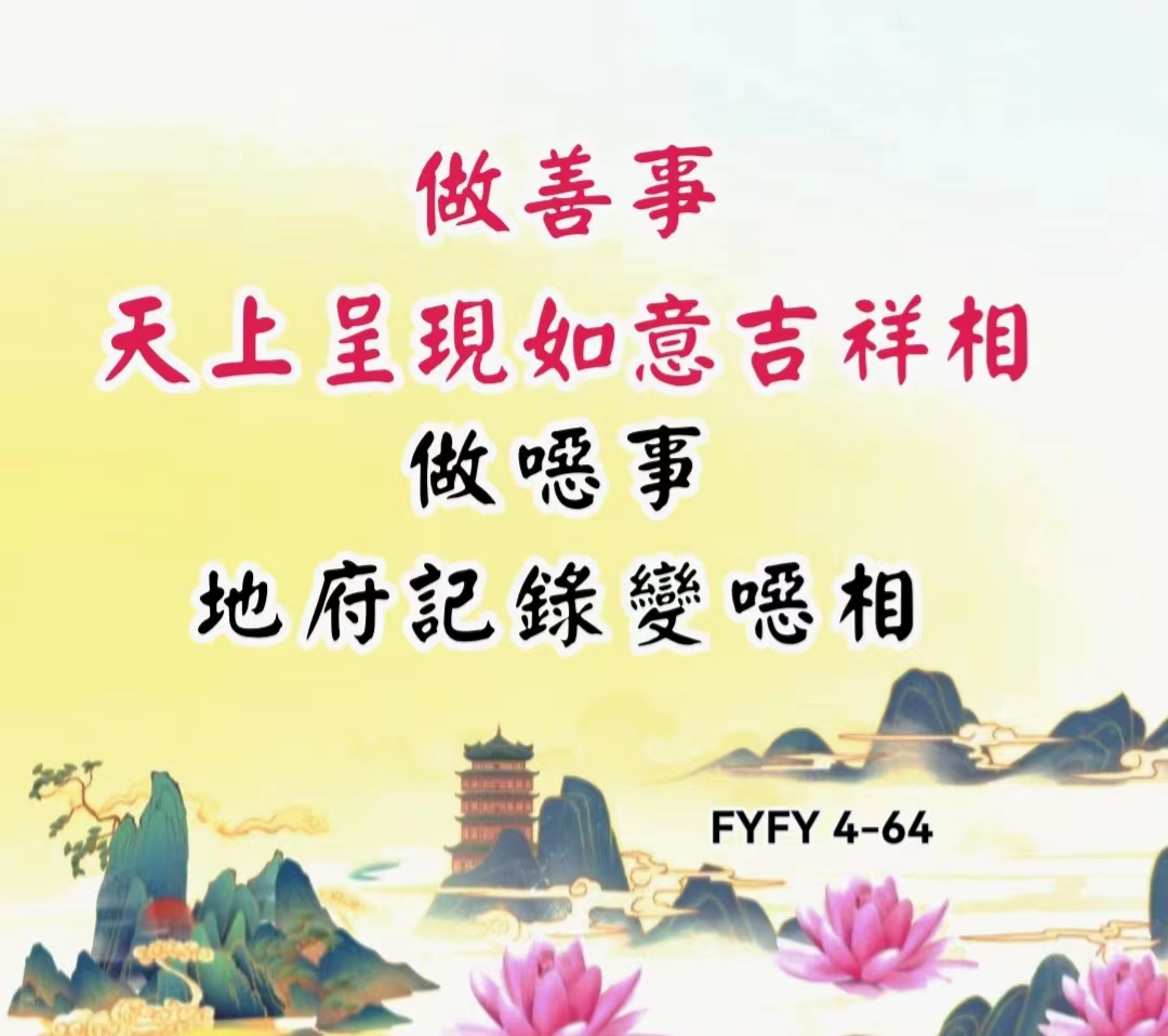 做善事,天上呈现如意吉祥相,做恶事,地府记录变恶相。