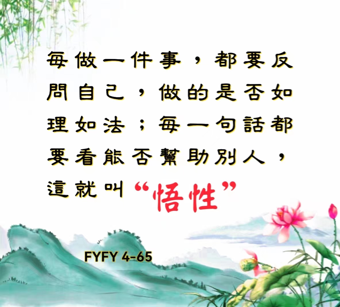 每做一件事,都要反问自己,做的是否如理如法;每一句话都要看能否帮助别人,这就叫“悟性”。