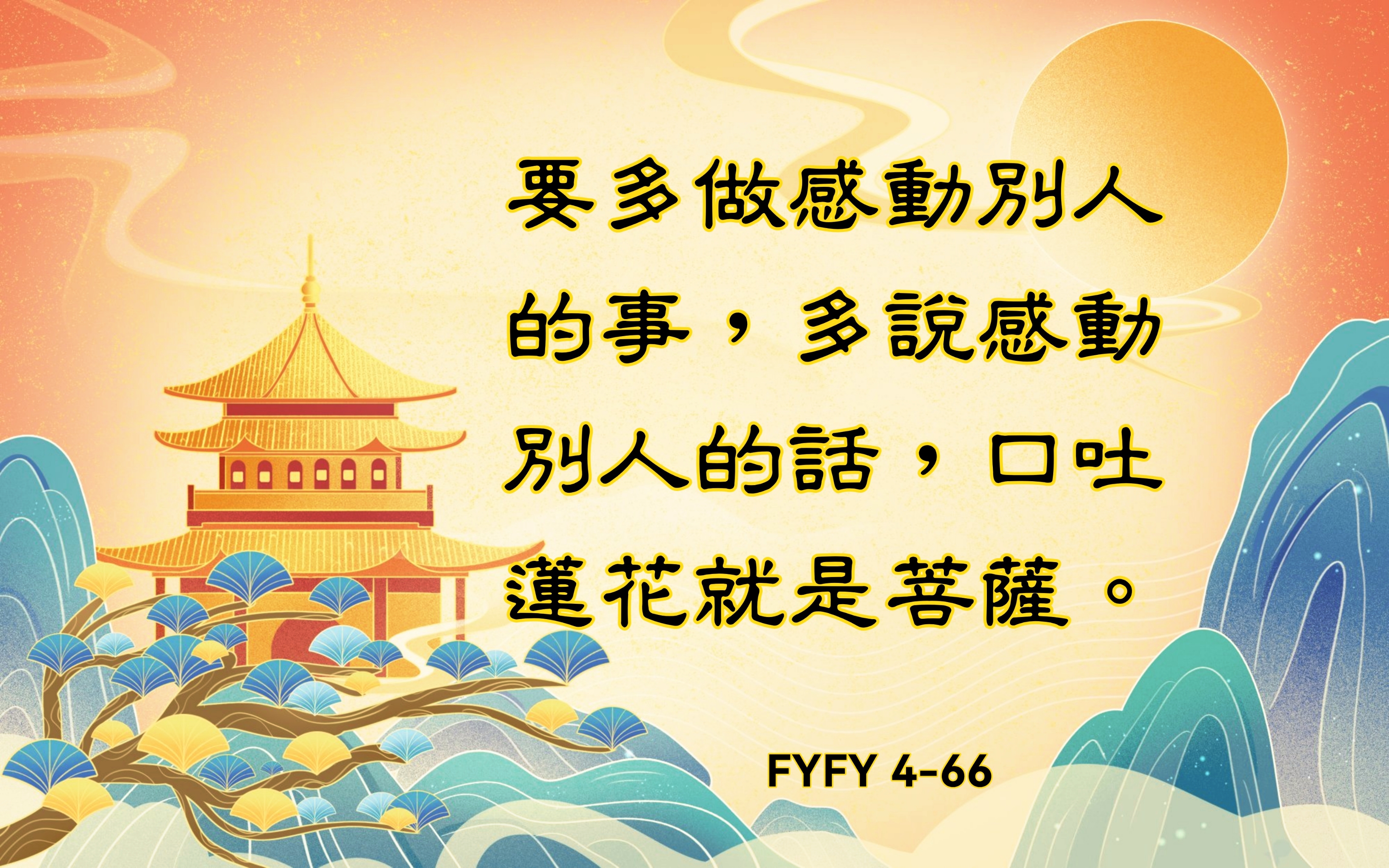 要多做感动别人的事,多说感动别人的话,口吐莲花就是菩萨。