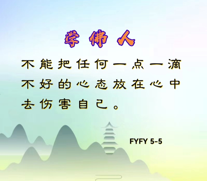 学佛人,不能把任何一点一滴,不好的心态放在心中,去伤害自己。