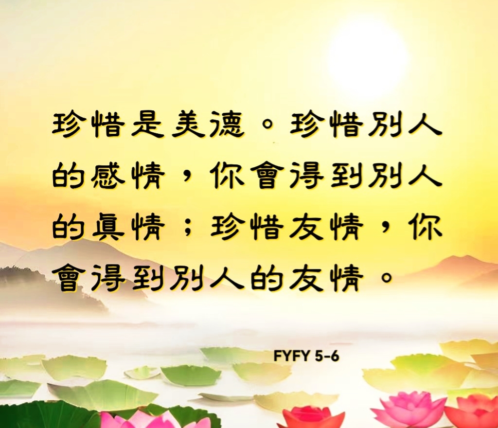 珍惜是美德。珍惜別人的感情,你會得到別人的眞情;珍惜友情,你會得到別人的友情。