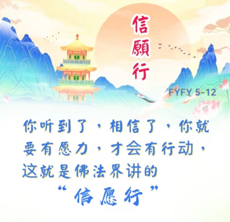 你听到了,相信了,你就要有愿力,才会有行动,这就是佛法界讲的信愿行