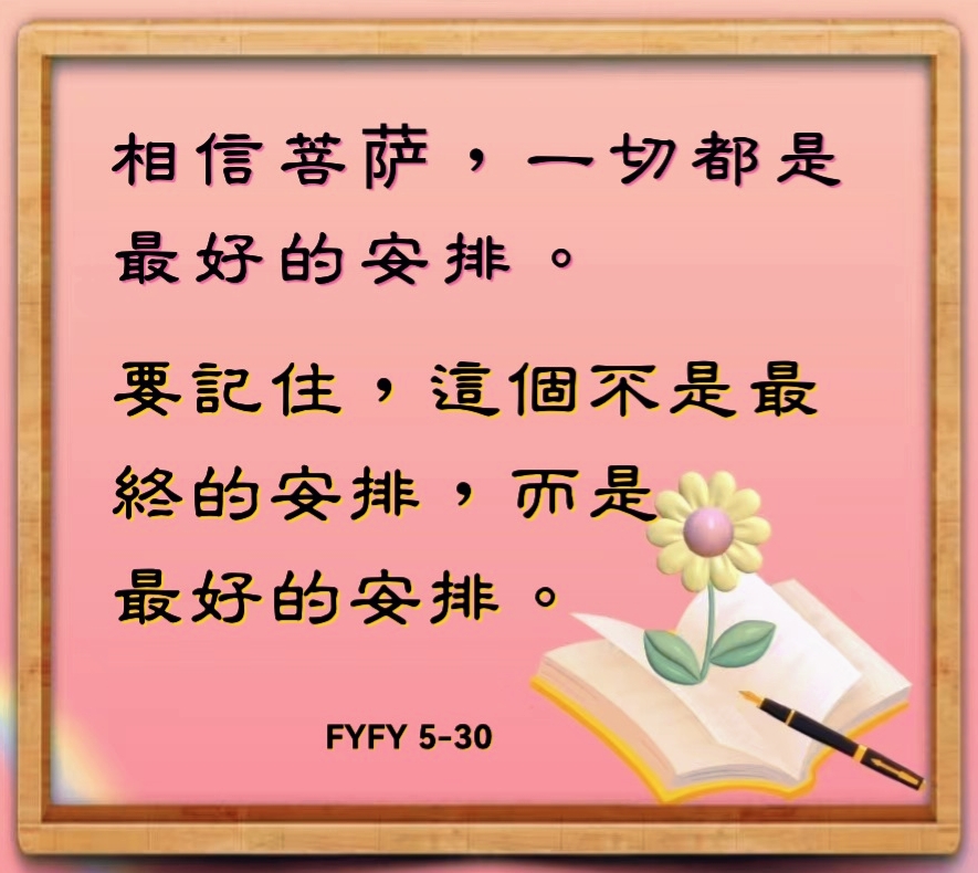 相信菩萨,一切都是最好的安排。要记住,这个不是最终的安排,而是最好的安排。