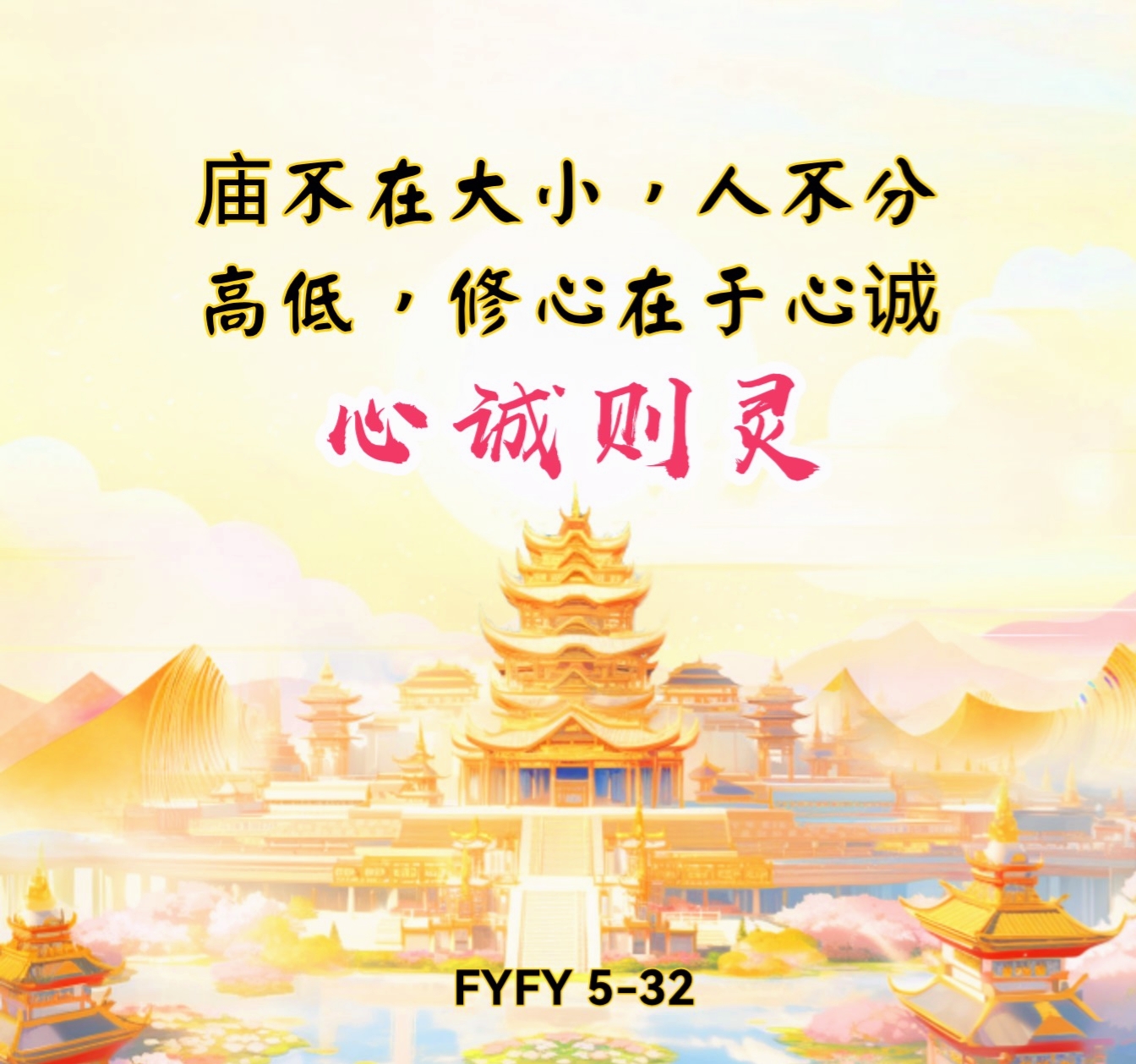 庙不在大小,人不分高低,修心在于心诚,心诚则灵。