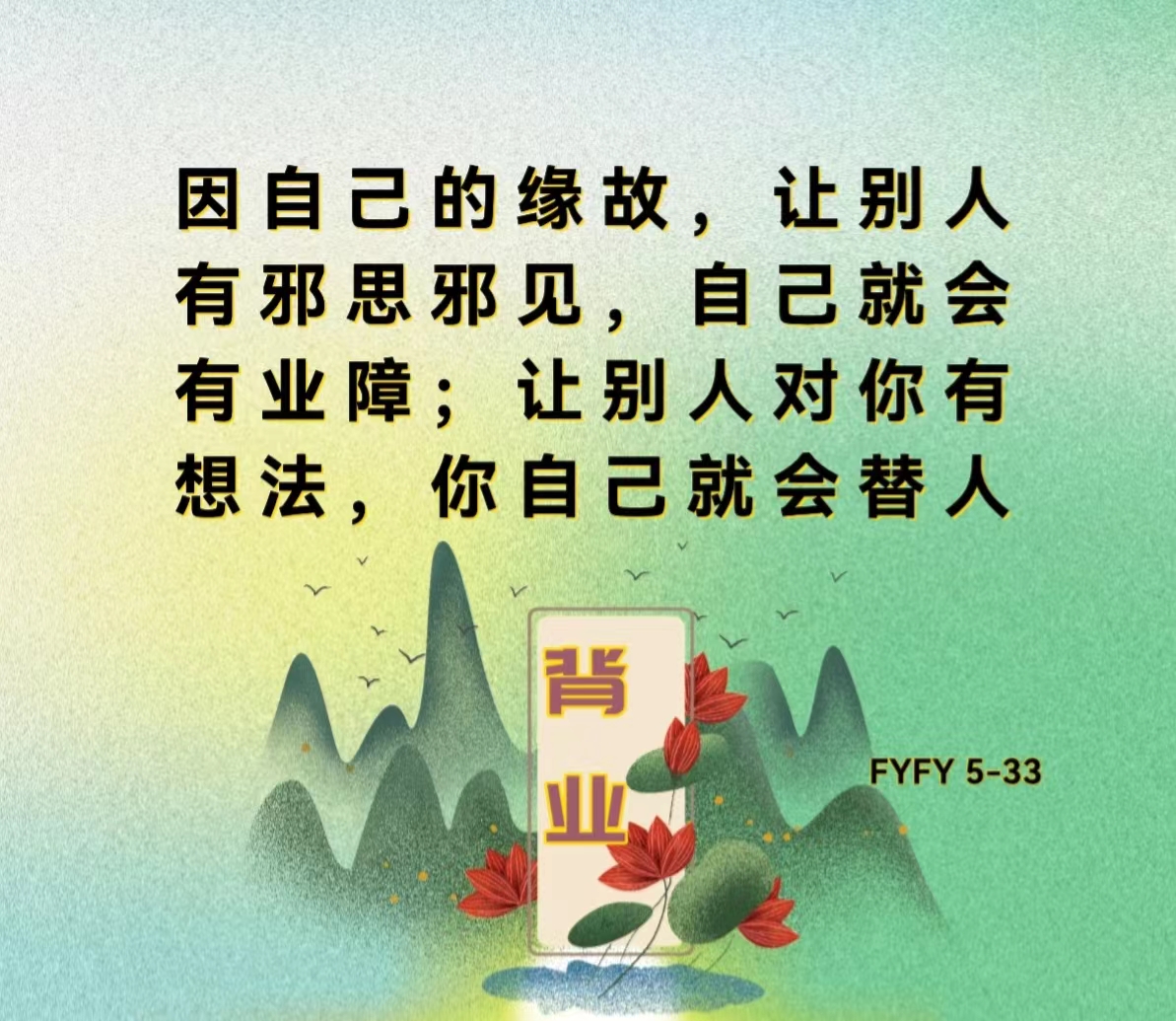 因自己的缘故,让别人有邪思邪见,自己就会有业障;让别人对你有想法,你自己就会替人背业。