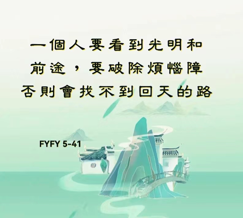 一个人要看到光明和前途,要破除烦恼障。否则会找不到回天的路。