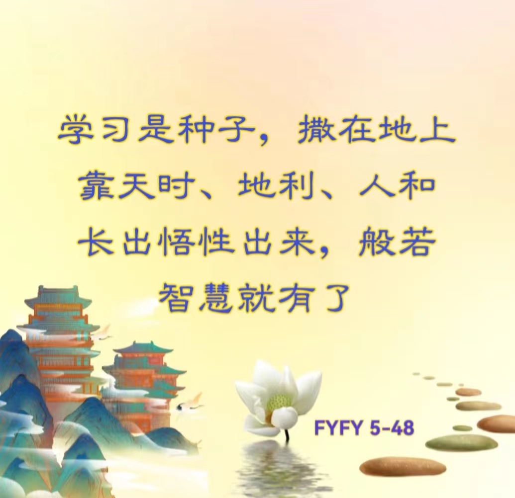学习是种子,撒在地上,靠天时、地利、人和长出悟性出来,般若智慧就有了。