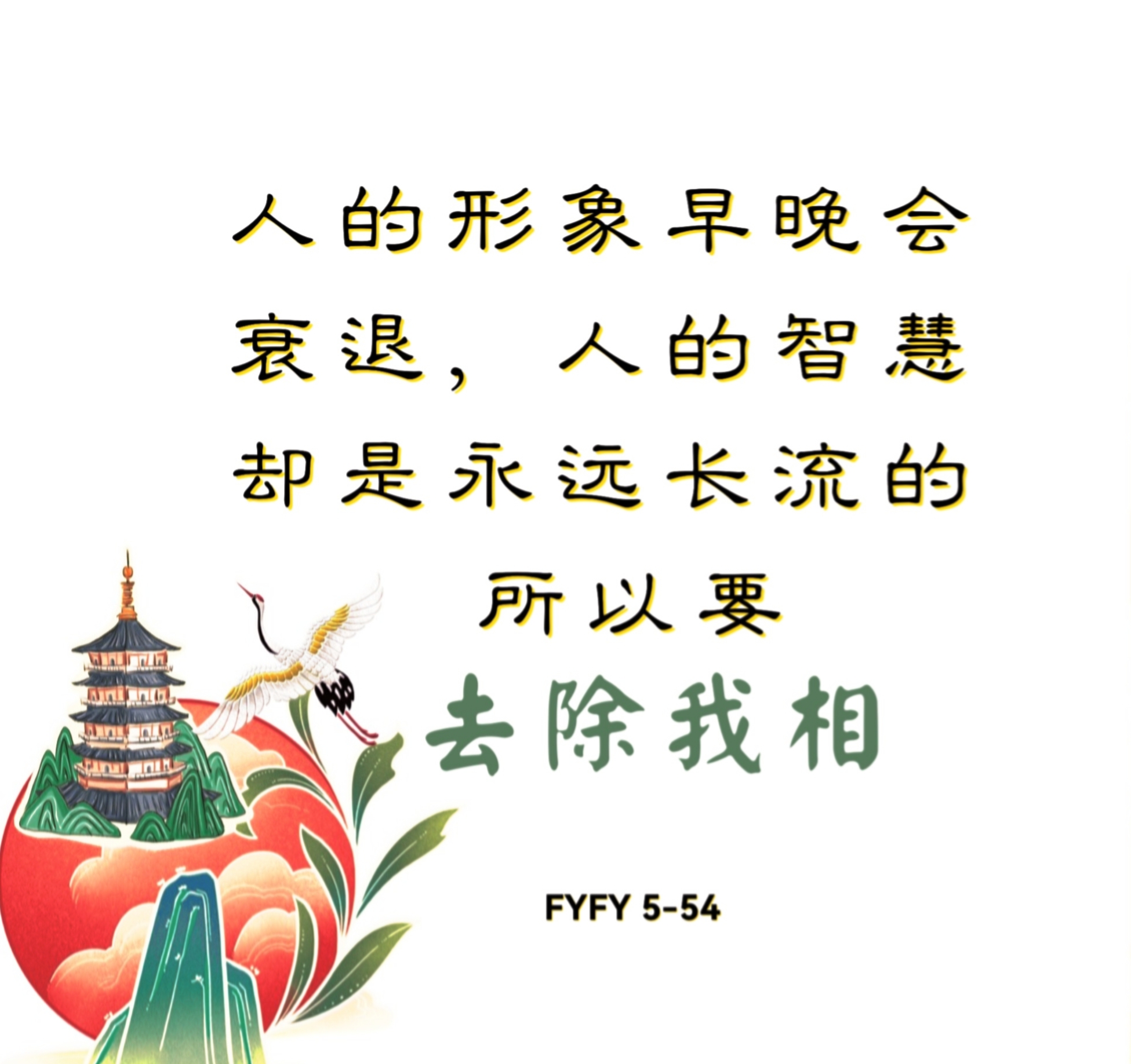 人的形象早晚会衰退,人的智慧却是永远长流的,所以要去除我相。