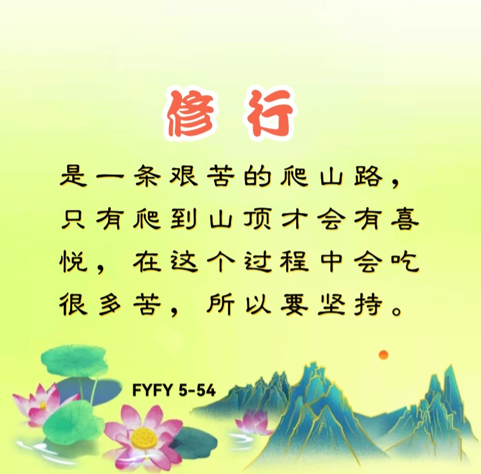 修行是一条艰苦的爬山路,只有爬到山顶才会有喜悦,在这个过程中会吃很多苦,所以要坚持。
