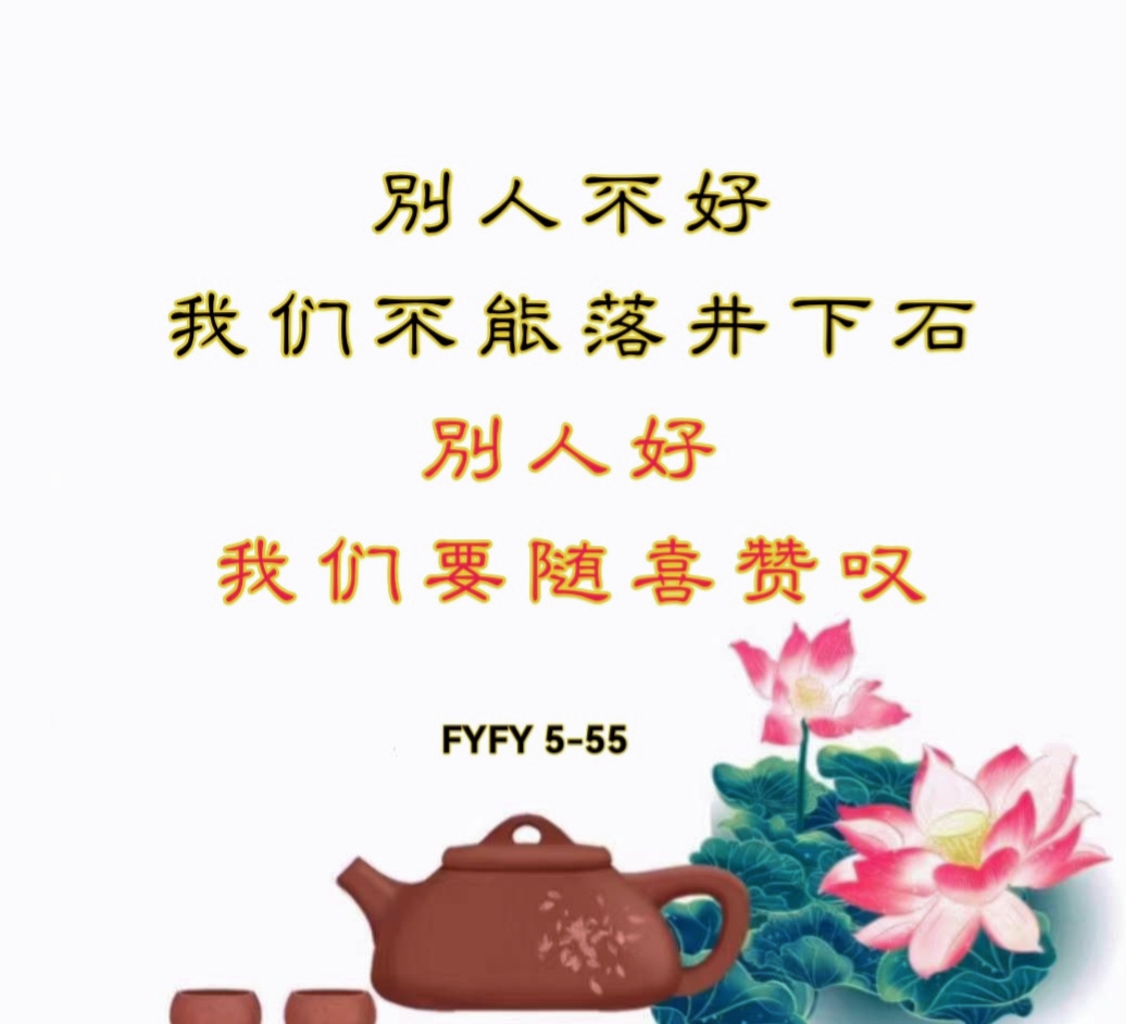 别人不好,我们不能落井下石;别人好,我们要随喜赞叹。