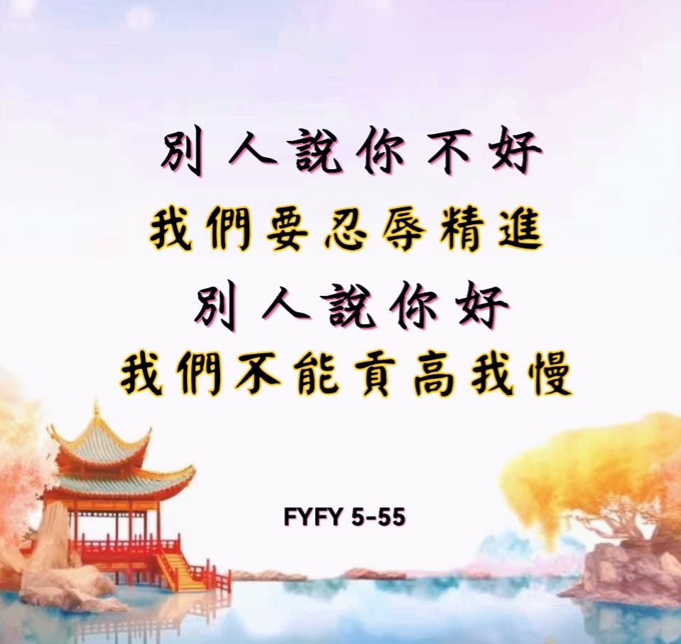 别人说你不好,我们要忍辱精进;别人说你好,我们不能贡高我慢。