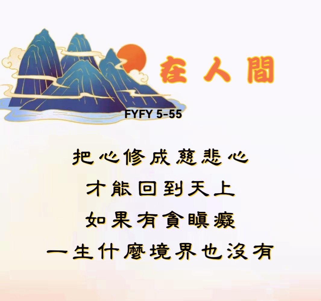 在人间把心修成慈悲心,才能回到天上;如果有贪瞋痴,一生什么境界也没有。